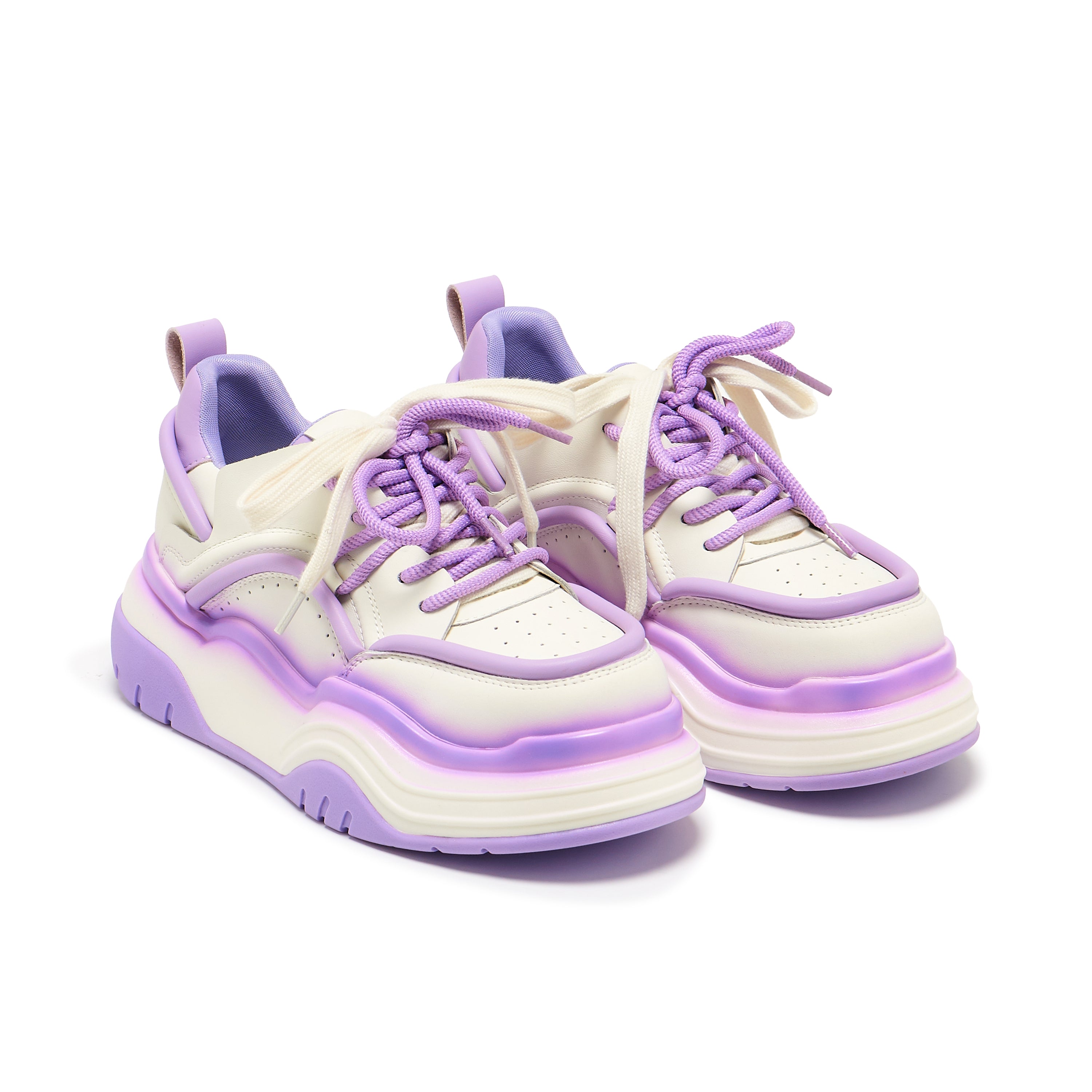 Soft serve energy meets future streetwear. The Neon Reef Trainers are a dopamine rush in sneaker form—layered up in dreamy violets, marshmallow cream and sunset haze. Chunky, curved soles serve big attitude while the gradient design brings a drip of Y2K surrealism.